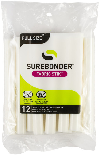 - Each package contains twelve 4in long 0.44in diameter round Fabric Glue Sticks.