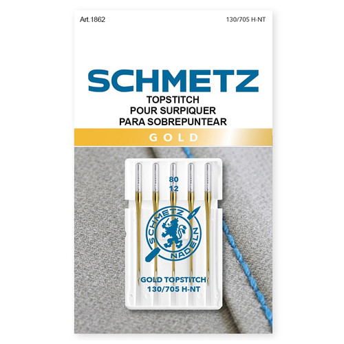 - Each package contains five SCHMETZ Topstitch Gold Machine Needles, size 80/12.